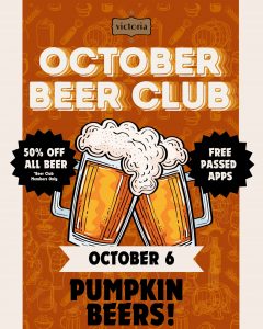 A beer club membership allows you to take advantage of benefits at both Victoria Gastro Pub & Manor Hill Tavern. You start a new membership with 25 FREE points. Half price on ALL beer ALL DAY Monday at Victoria Gastro Pub (dine-in only), Half price on ALL beer ALL DAY Tuesday at Manor Hill Tavern (dine-in only), entry to an annual trip giveaway, and a whole lot of fun!